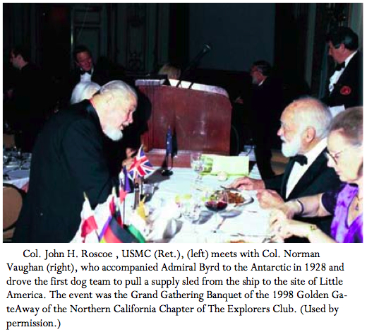 COL John Roscoe, USMCR (Ret), died on 23 February 2007, in Riverside CA. John was a geographer. He compiled and edited the USN Antarctica Bibliography (1951). He served with Highjump and Windmill. Roscoe Glacier and Roscoe Promontory are named in his honor. John was also a member of the American Polar Society